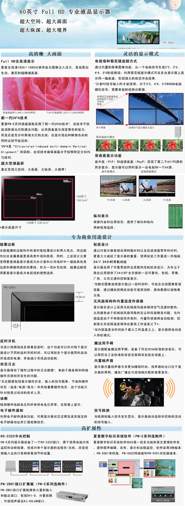 | LCD | 60英寸寬屏(1,525 mm對角),UV2ALCD |
